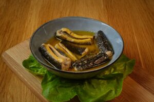 Oma’s Stoofaal ® € 10,00 per portieverpakking (bevat circa 250 gram vis en circa 80 gram botersaus)